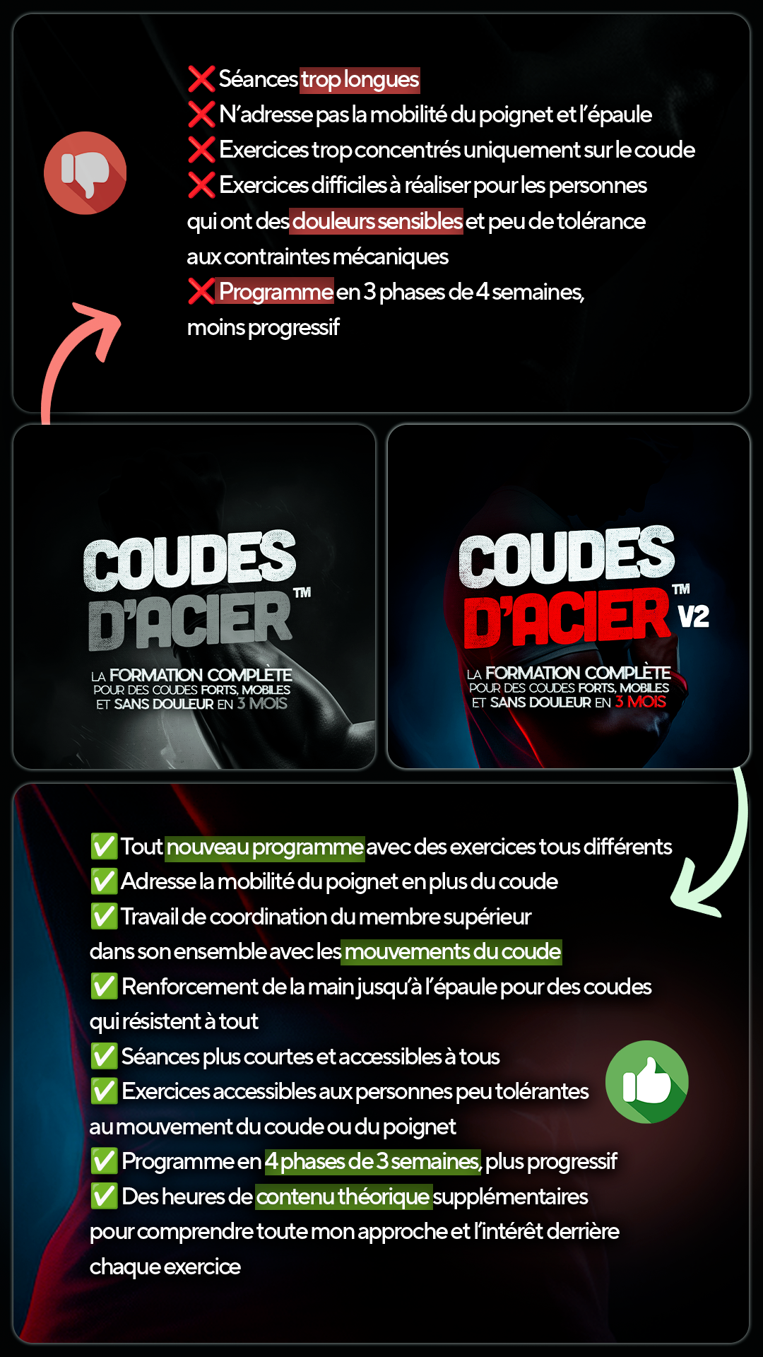 Je te présente COUDES D’ACIER 2™: la formation complète qui va te permettre d’avoir enfin des coudes forts, mobiles et sans douleur, en seulement 3 mois.