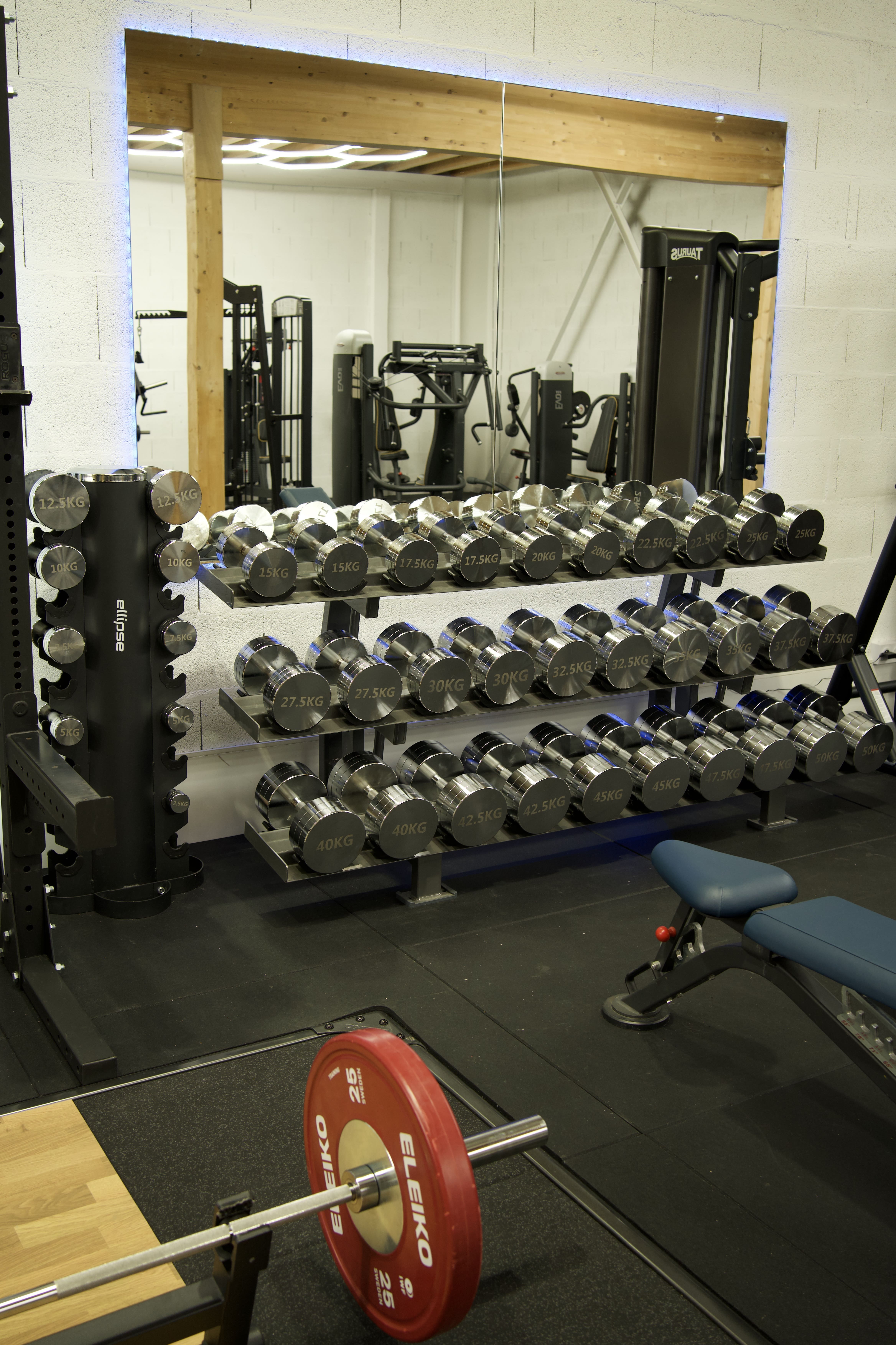 2 plateaux d'haltérophilie Eleiko, 2ème rack Rogue (bientôt Eleiko), 2 sets complets de poids Eleiko, barre olympique masculine et féminine haltérophilie Eleiko, deadlift jack UniStrength
