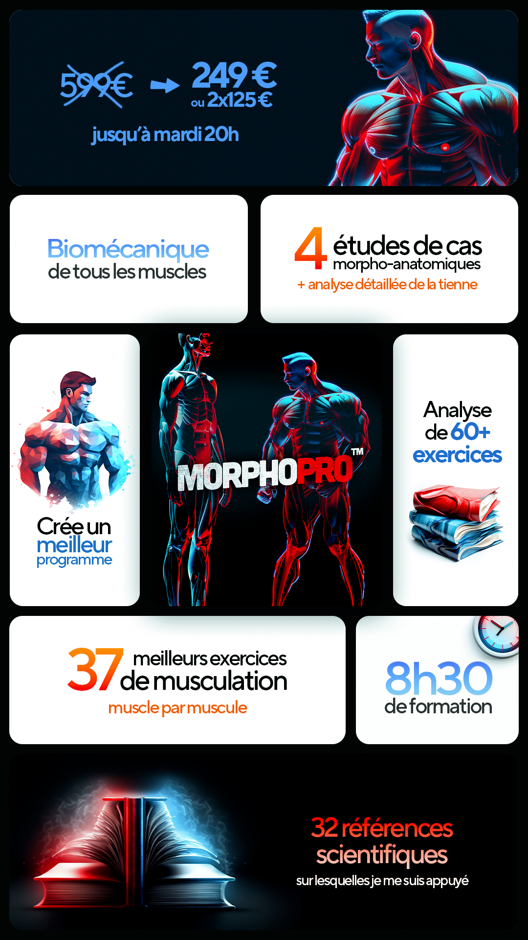 Le système MorphoPro™ est basé sur plusieurs dizaines de références scientifiques et des années d'expérience dans la musculation et la préparation physique chez moi et ceux de qui j'ai appris.